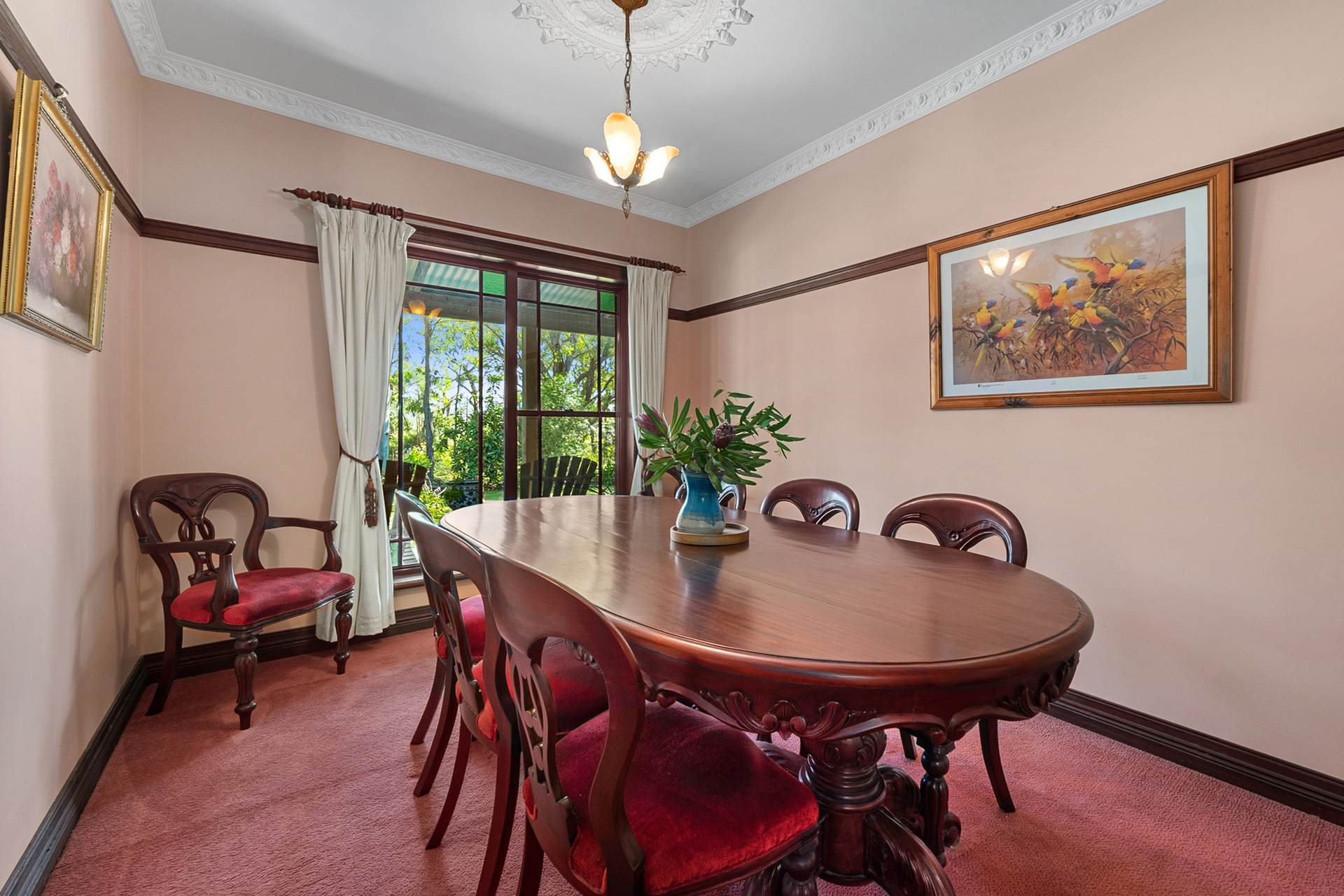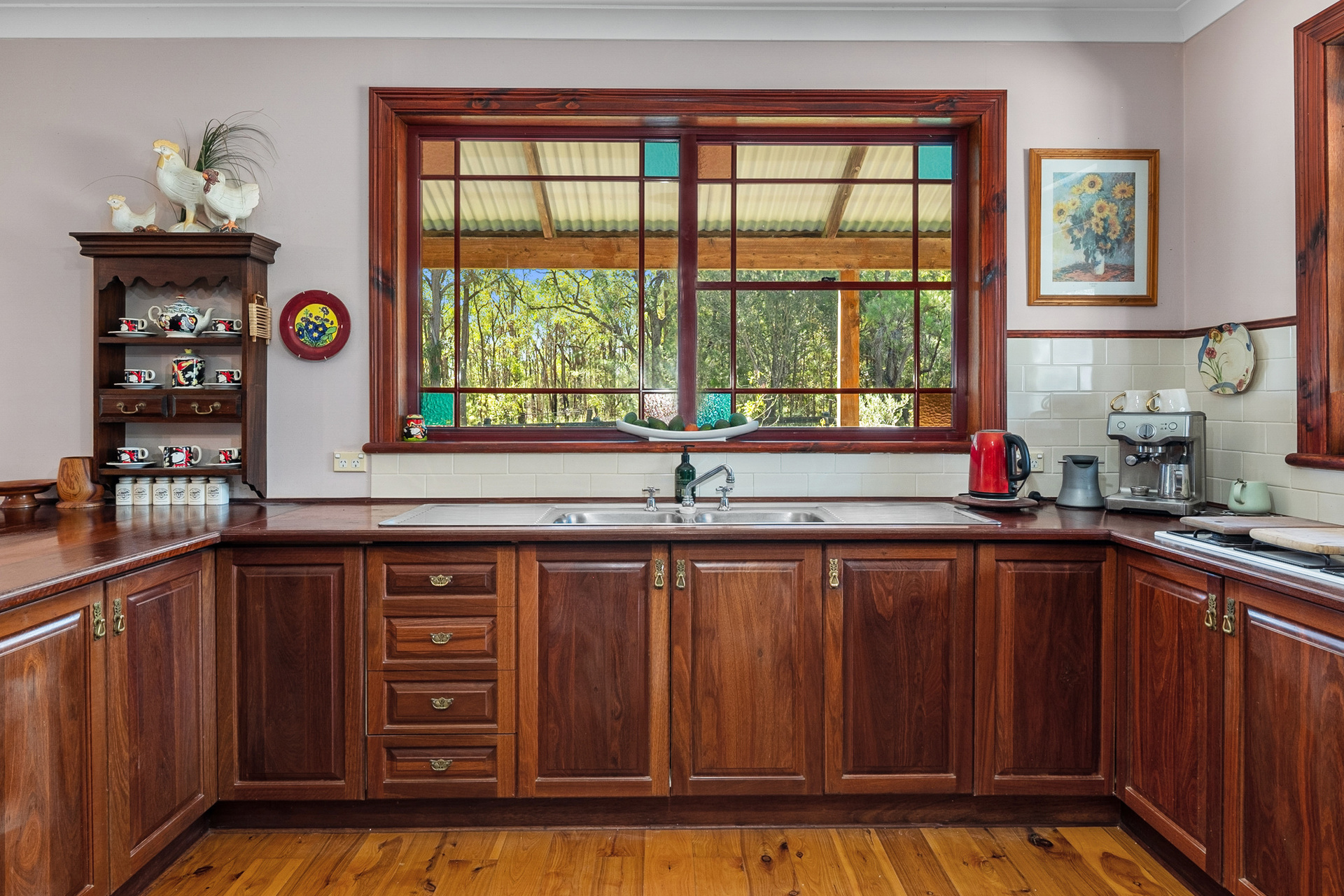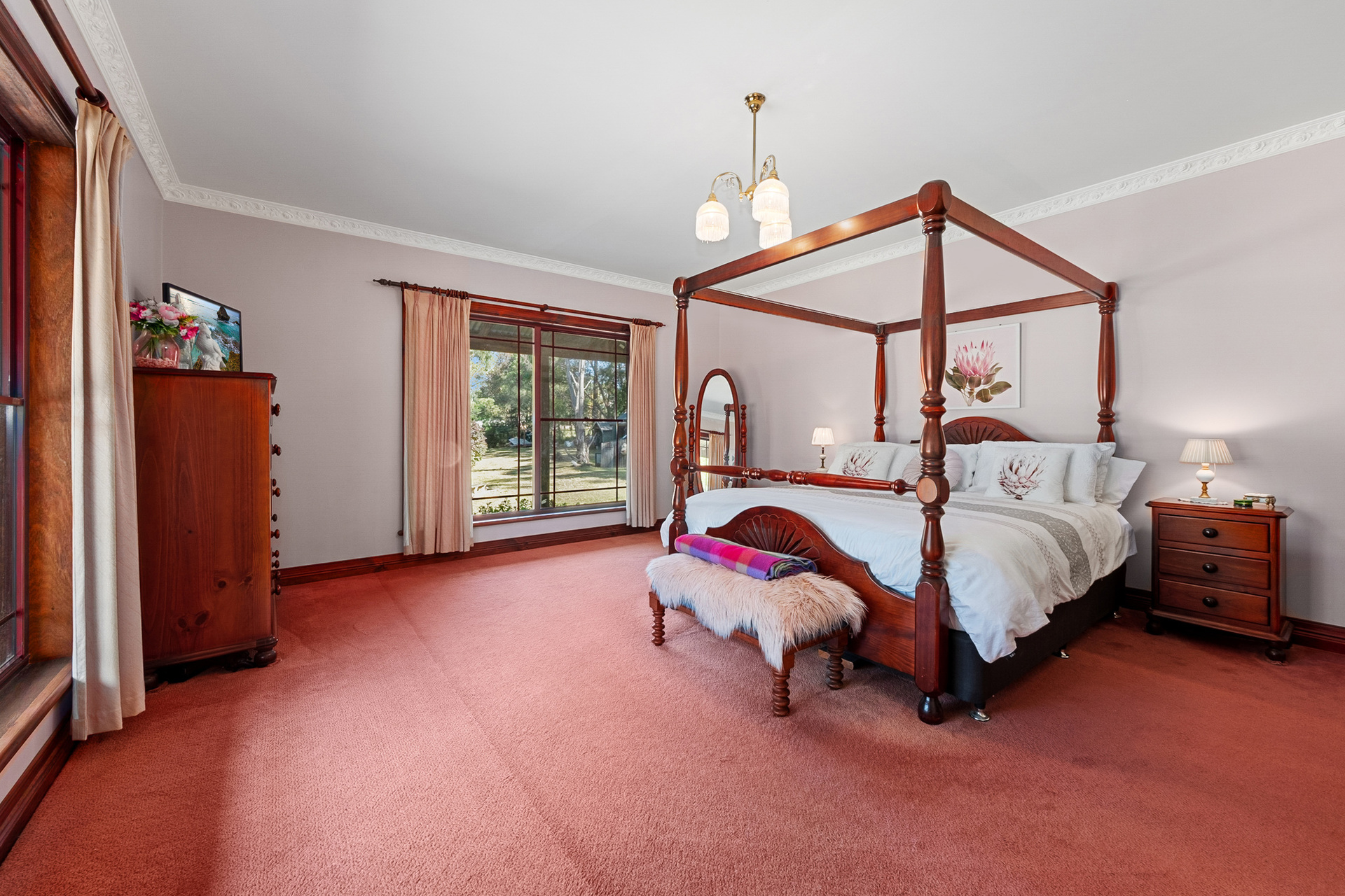 Serenity Plus! Nestled at the end of a quiet country road, this grand Victorian era inspired homestead is sure to impress. Handcrafted and lovingly built, it offers upmarket inclusions and generous proportions throughout. Upon entry you are greeted with formal lounge and dining rooms featuring high ceilings, ornate cornices and ceiling roses and a stunning timber feature open fireplace. The spacious full timber kitchen flows seamlessly to the open plan casual living and meals area, featuring French doors opening to the ironbark wrap around verandahs.