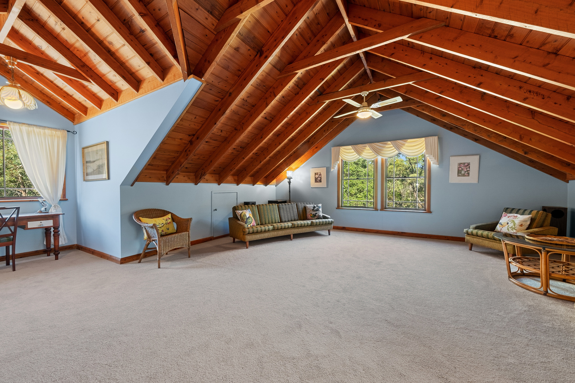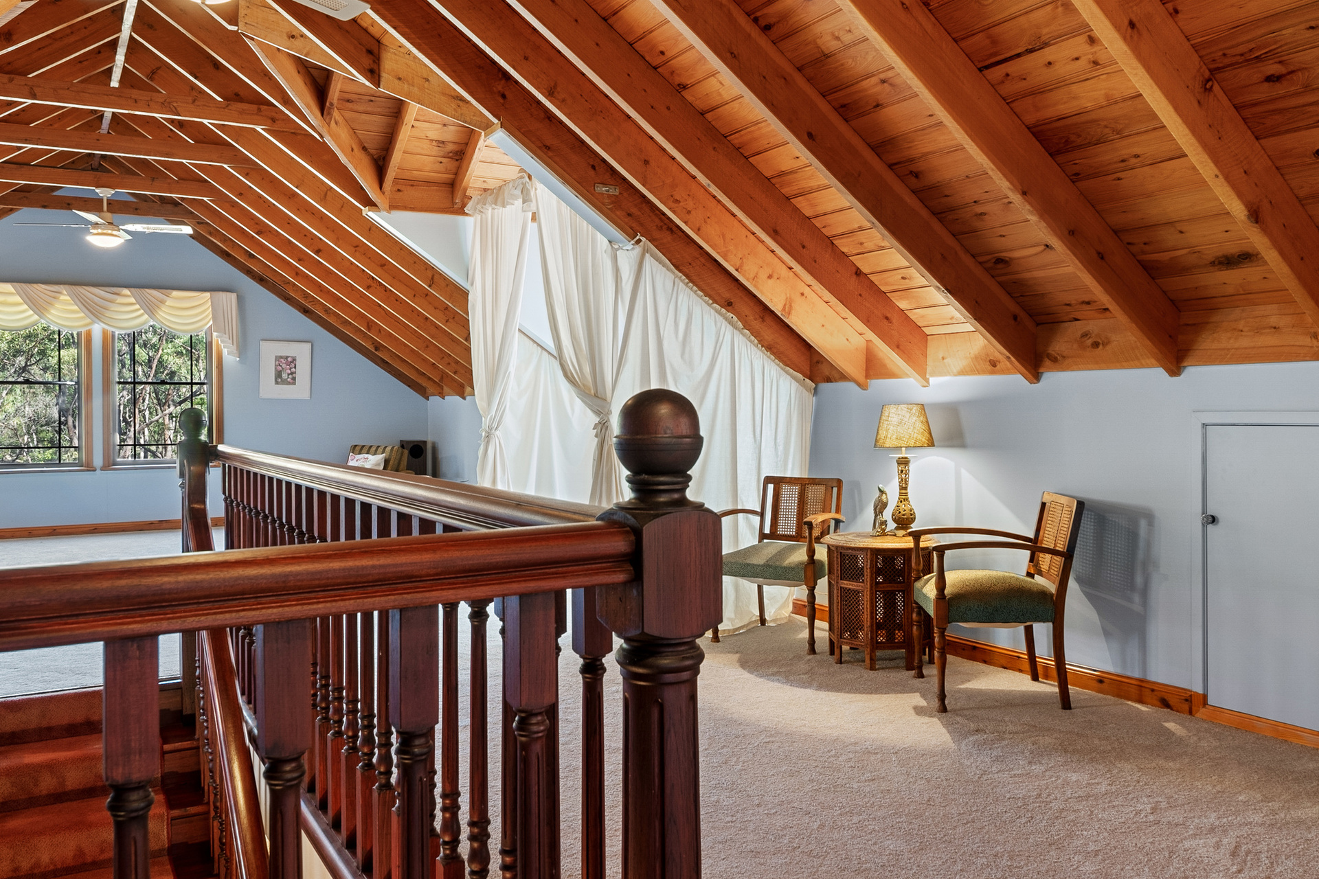 Downstairs you will also find the king size master with large picture windows with a peaceful rural outlook, serviced by the traditional main bathroom with a handcrafted timber vanity. The elegant solid timber feature staircase leads to the loft-style second level featuring exposed timber beams and dormer windows, two additional bedrooms, a second bathroom and enough room for multiple living and workspaces, or additional bedrooms if required.