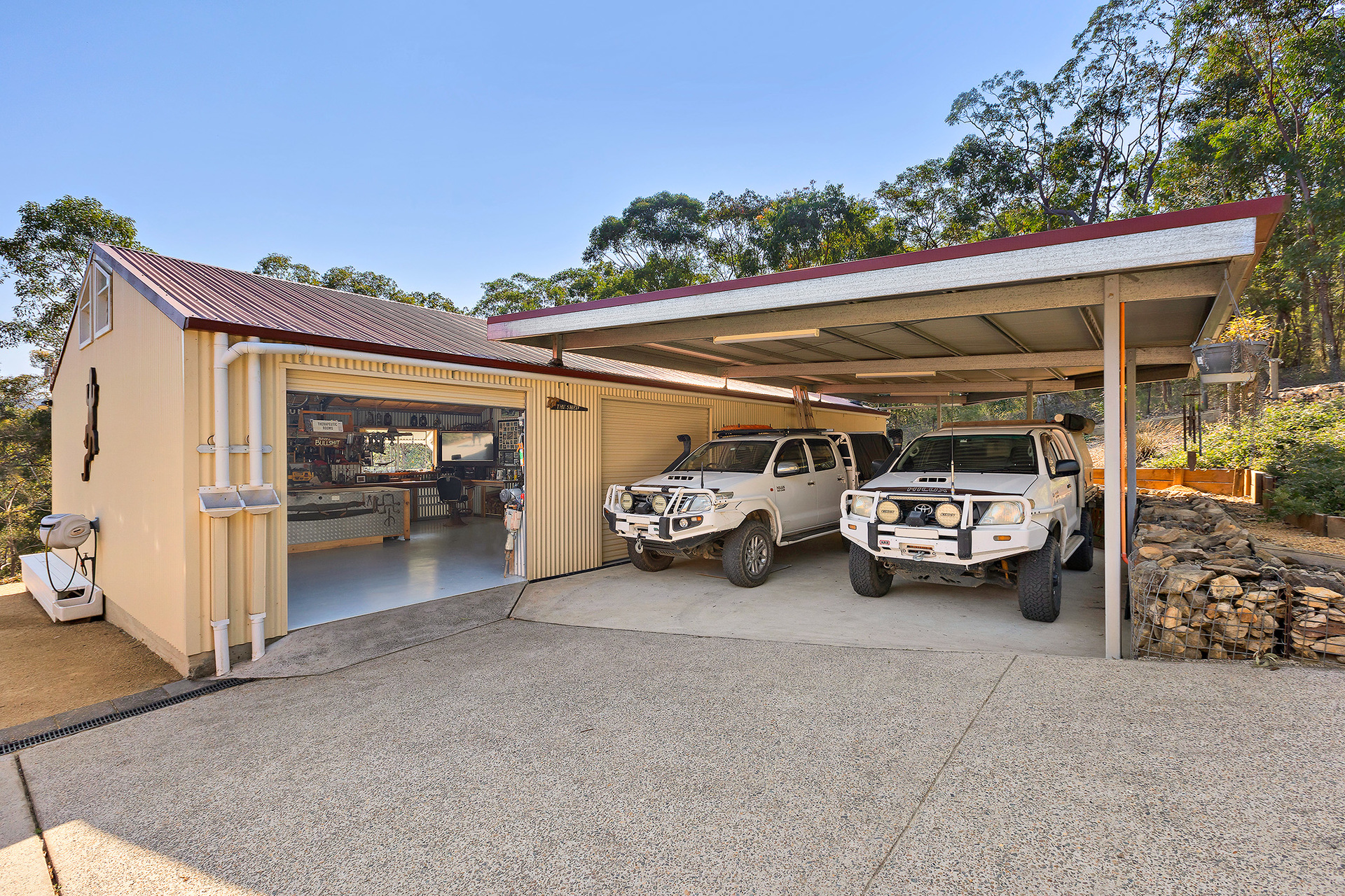 For those who need extra space, there's a large workshop shed, perfect for storage, DIY projects, or creative ventures.