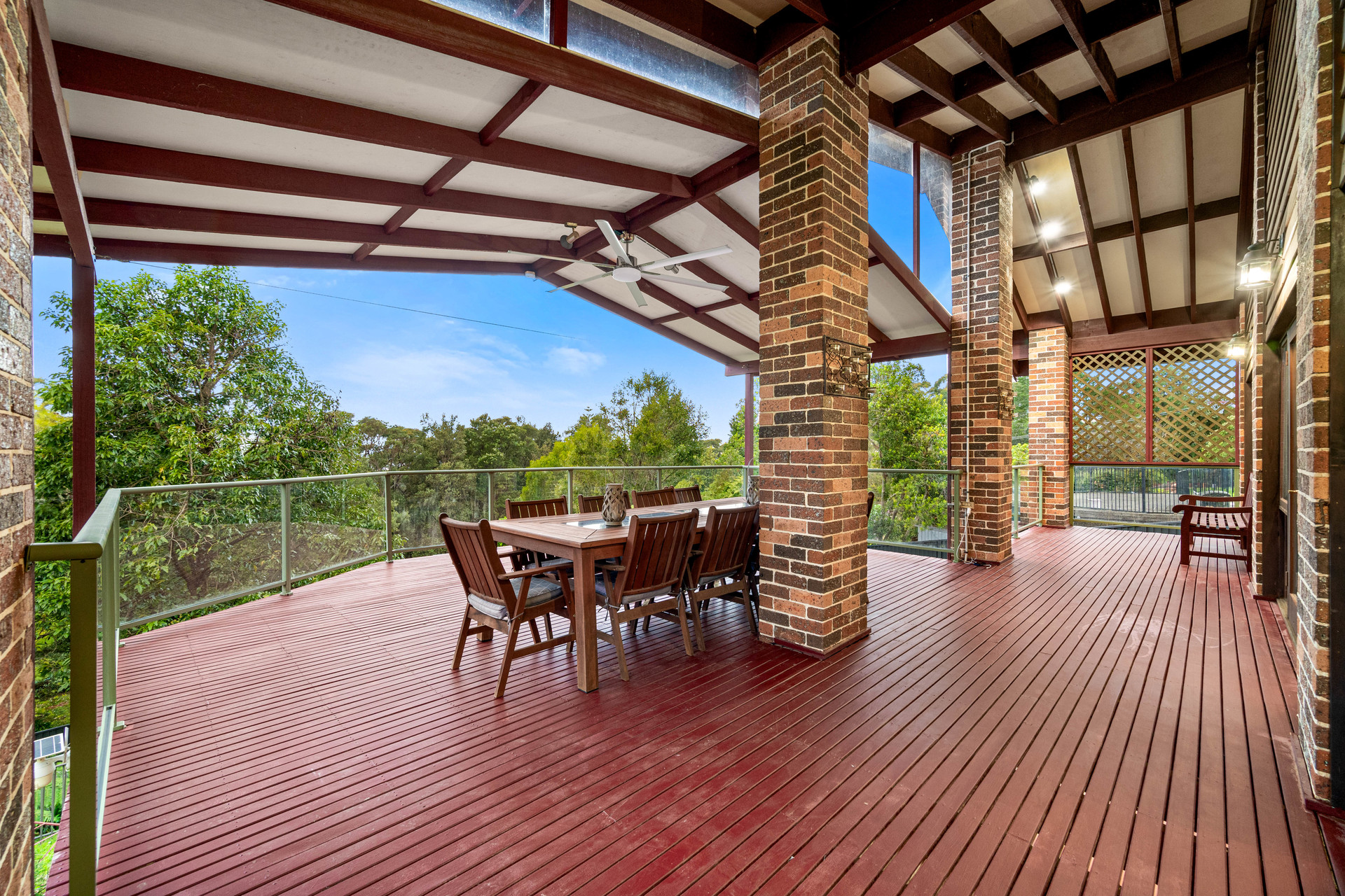 Home Features • Double brick home • Renovated kitchen, with dishwasher & gas cooktop stove • Slow combustion fireplace for the cooler months • Separate formal dining room • Living room overlooking timber deck, backyard & native bushland • Main bedroom includes walk-in-robe, ensuite & balcony • 5 Bedrooms in total • 2 way bathroom with separate toilet • Split-system air conditioning + ceiling fans throughout the home • Large rumpus room downstairs, leading onto covered outdoor patio • Double garage + double carport with side access • Store room or workshop with patio • Approx 120,000 litre water tank • Solar panels
