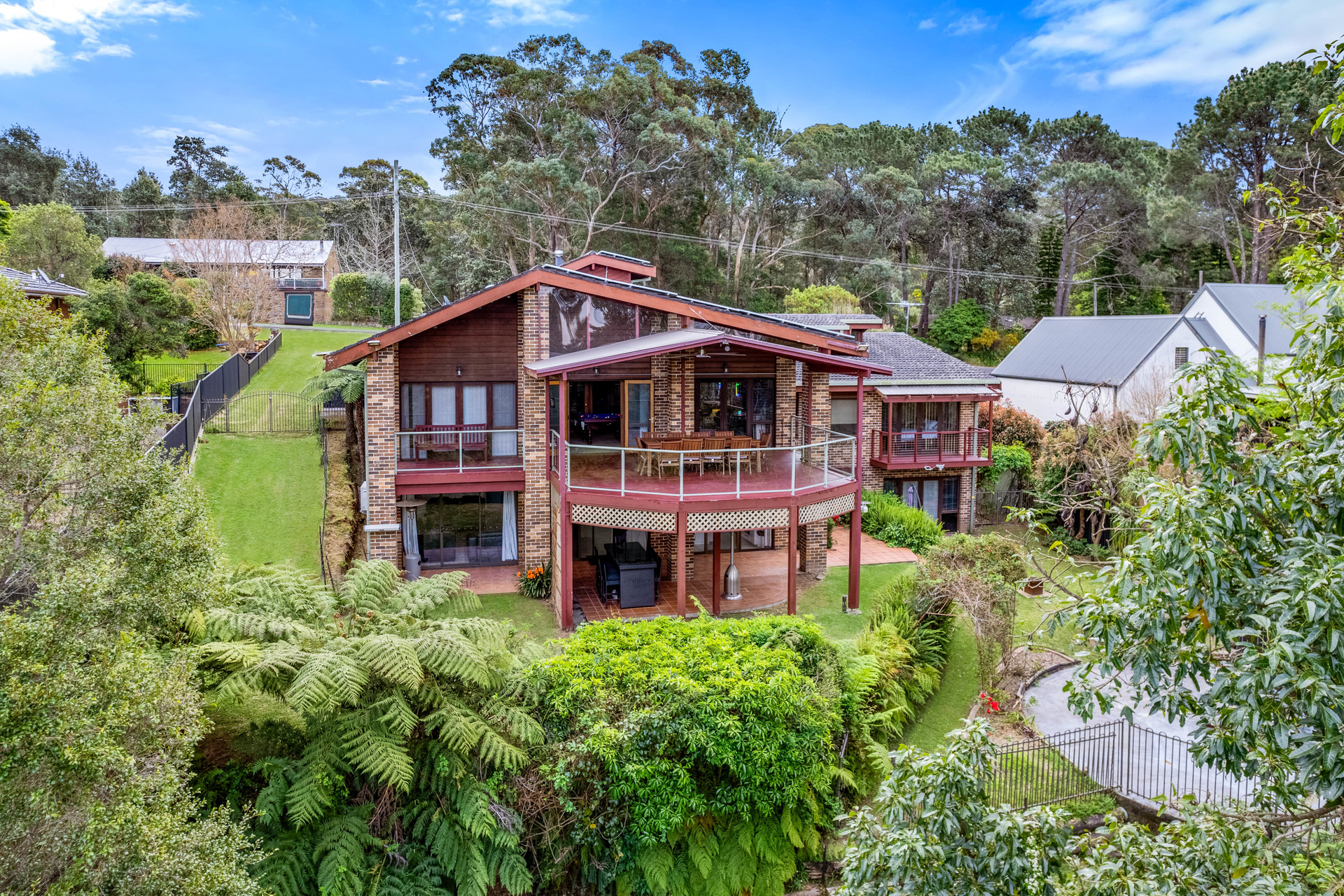 This multi-level, architecturally designed home is situated upon a generous 1600sqm block set in a quiet location. With high ceilings having exposed timber beams, brick feature walls and a stunning atrium at the centre of the home, you will love entertaining friends and Family.